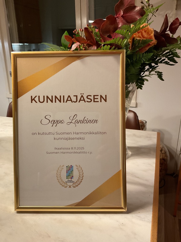 Suomen Harmonikkaliitto ry kutsui Seppo Lankisen kunniajäsenekseen 8.11.2025 Ikaalisissa pidetyssä liiton syyskokouksessa.